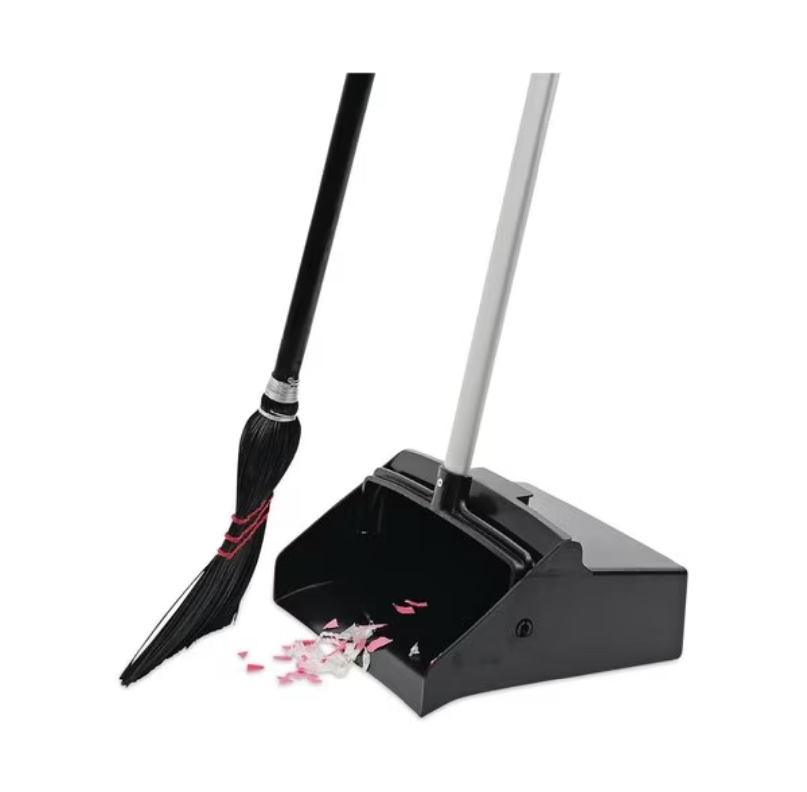 Lobby Dust Pan BLACK - Boardwalk Lobby Dust Pan, Plastic/Aluminum, 11.75" Wide, 34" Handle, Blk/Silver